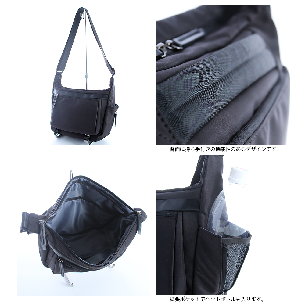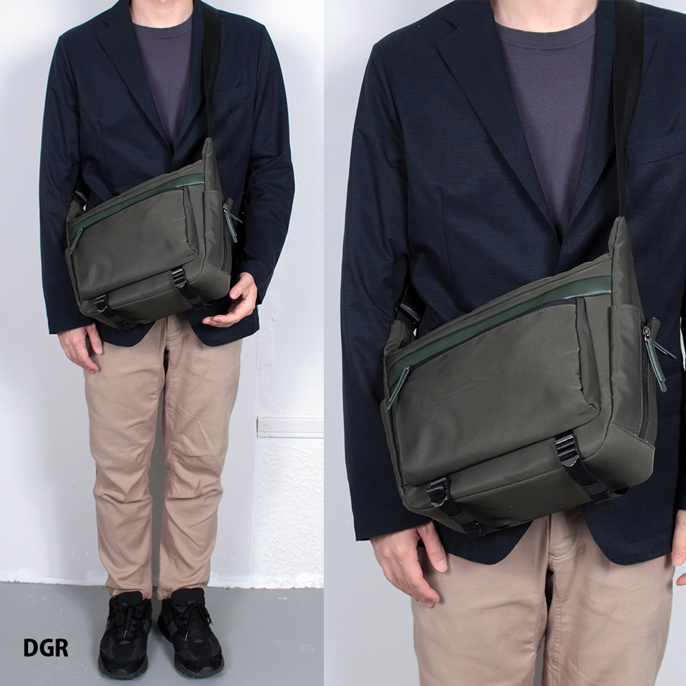 撥水加工の施された高密度ツイルポリエステル素材で軽量で持ちやすい仕様になっています。