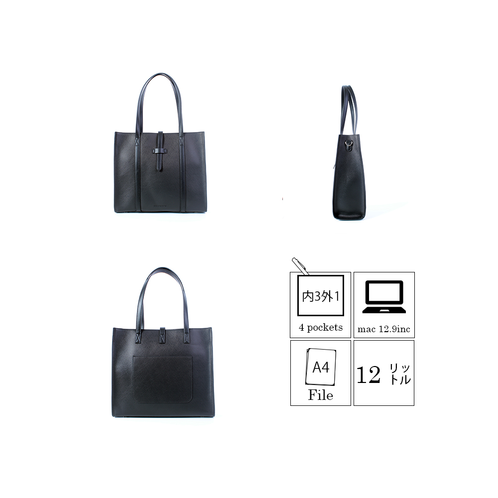 BNV-6706 ラグジュアリーな素材感と定番のスクエアデザインでa4ノートやファイルも収納できるトートバッグ