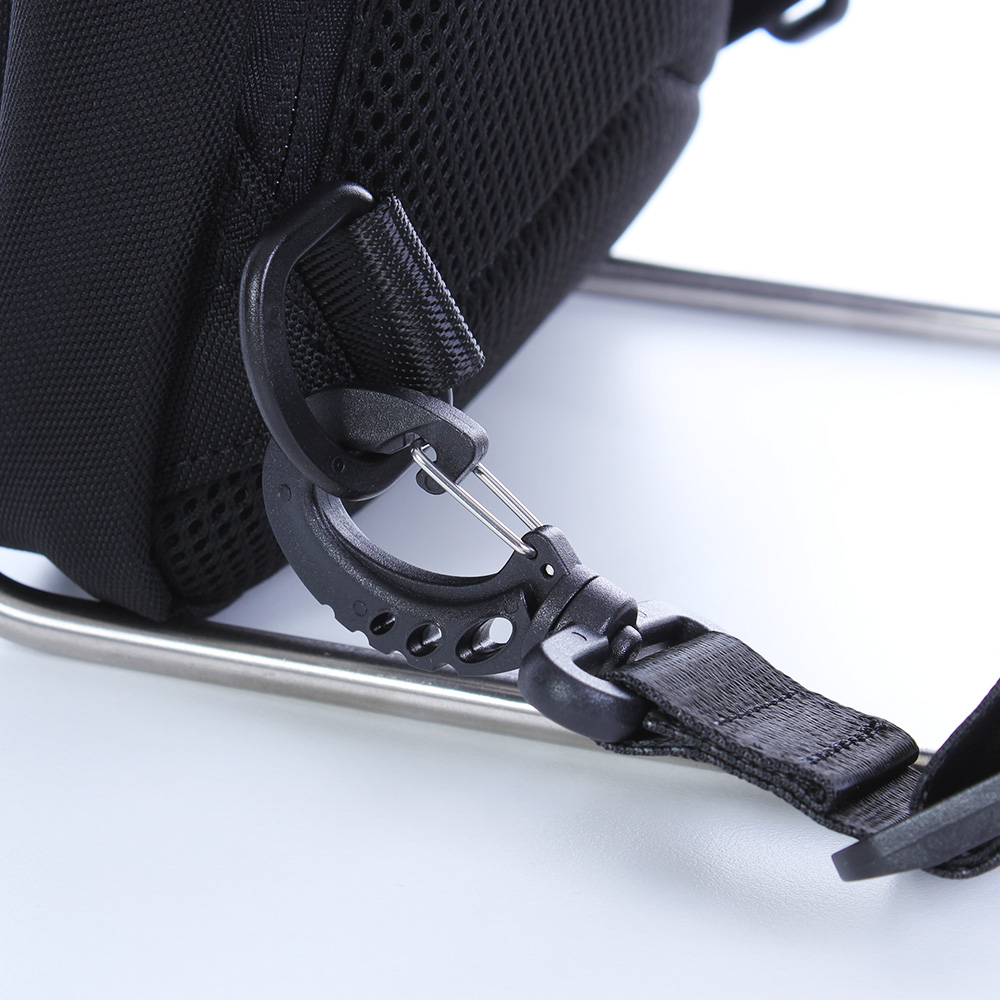着脱可能なヒップバッグが付属し、旅行や出張にも便利なスクエアリュック