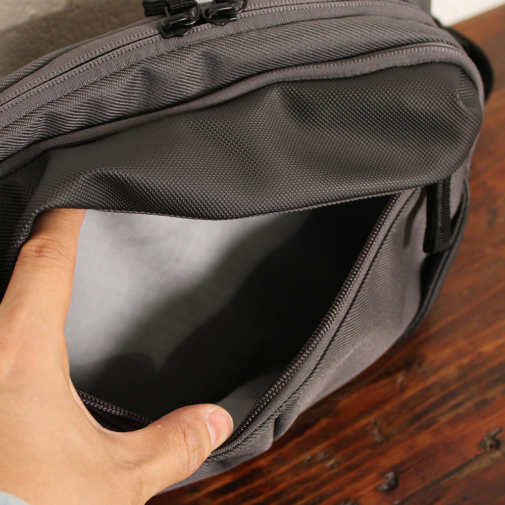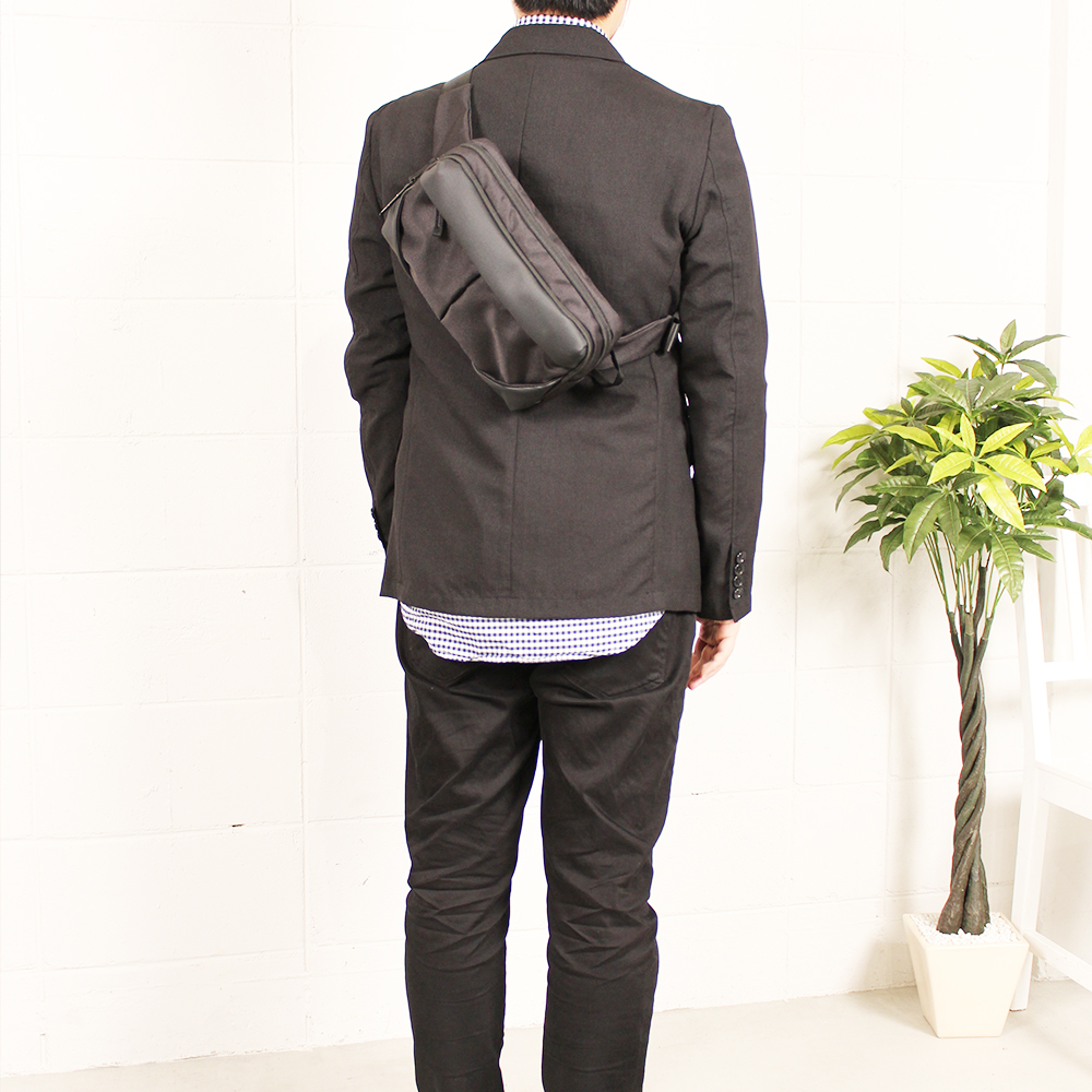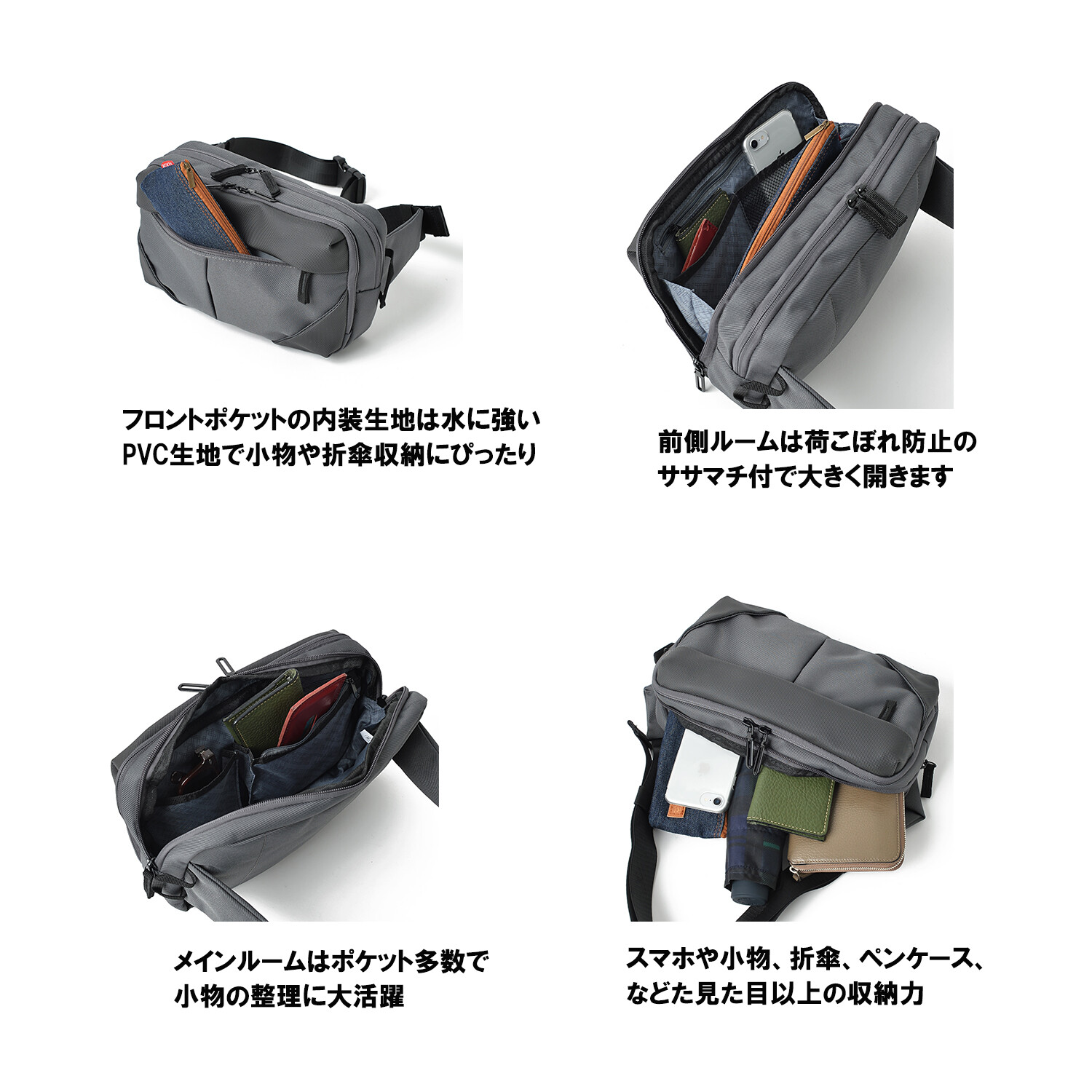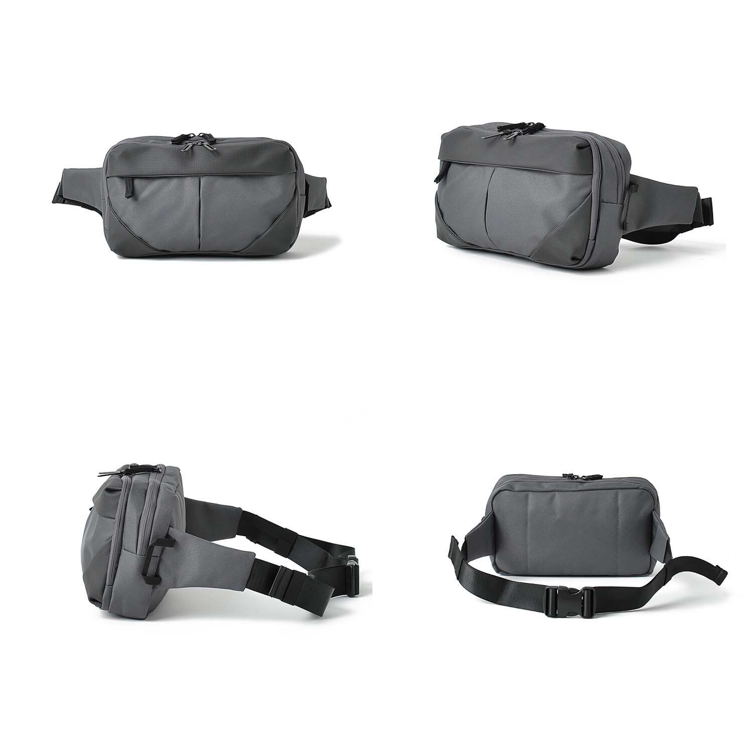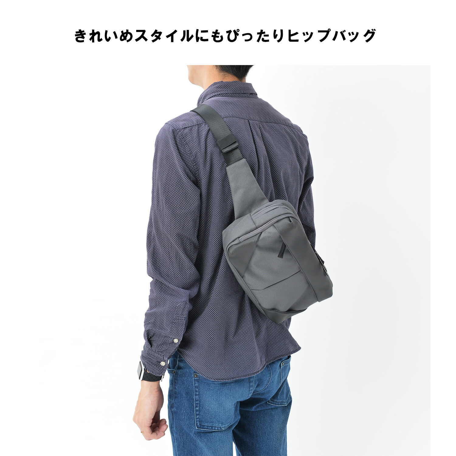 着脱可能なヒップバッグが付属し、旅行や出張にも便利なスクエアリュック