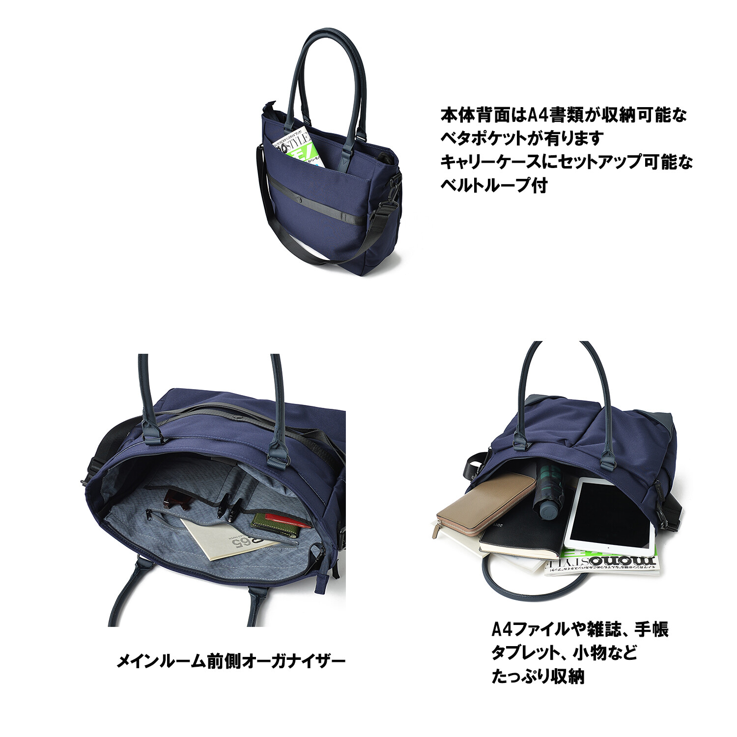 ビジネスシーンでも便利な機能性抜群の撥水2wayトートショルダーバッグ